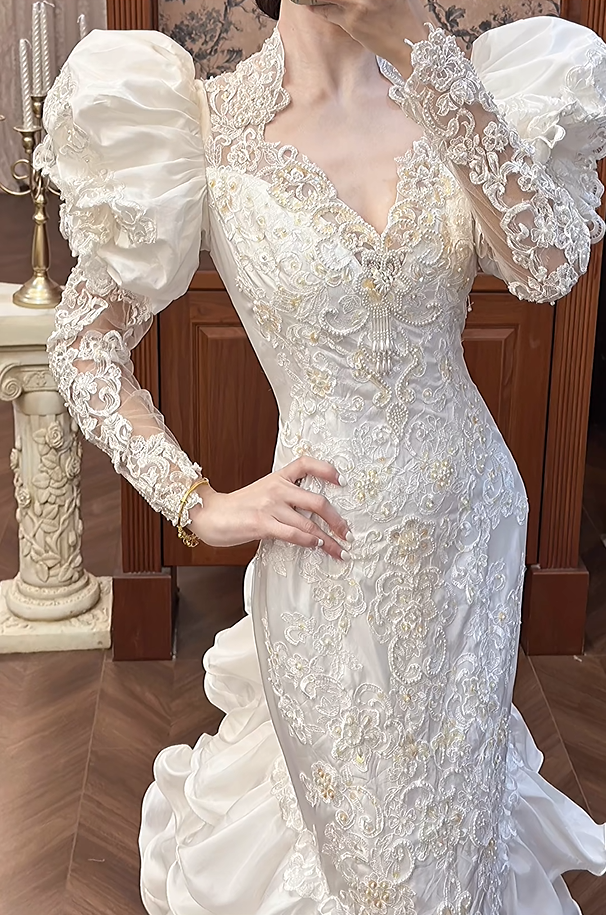 Retro Wedding Dress Sweetheart Pleated Tiered Mermaid Wedding Dress D3981