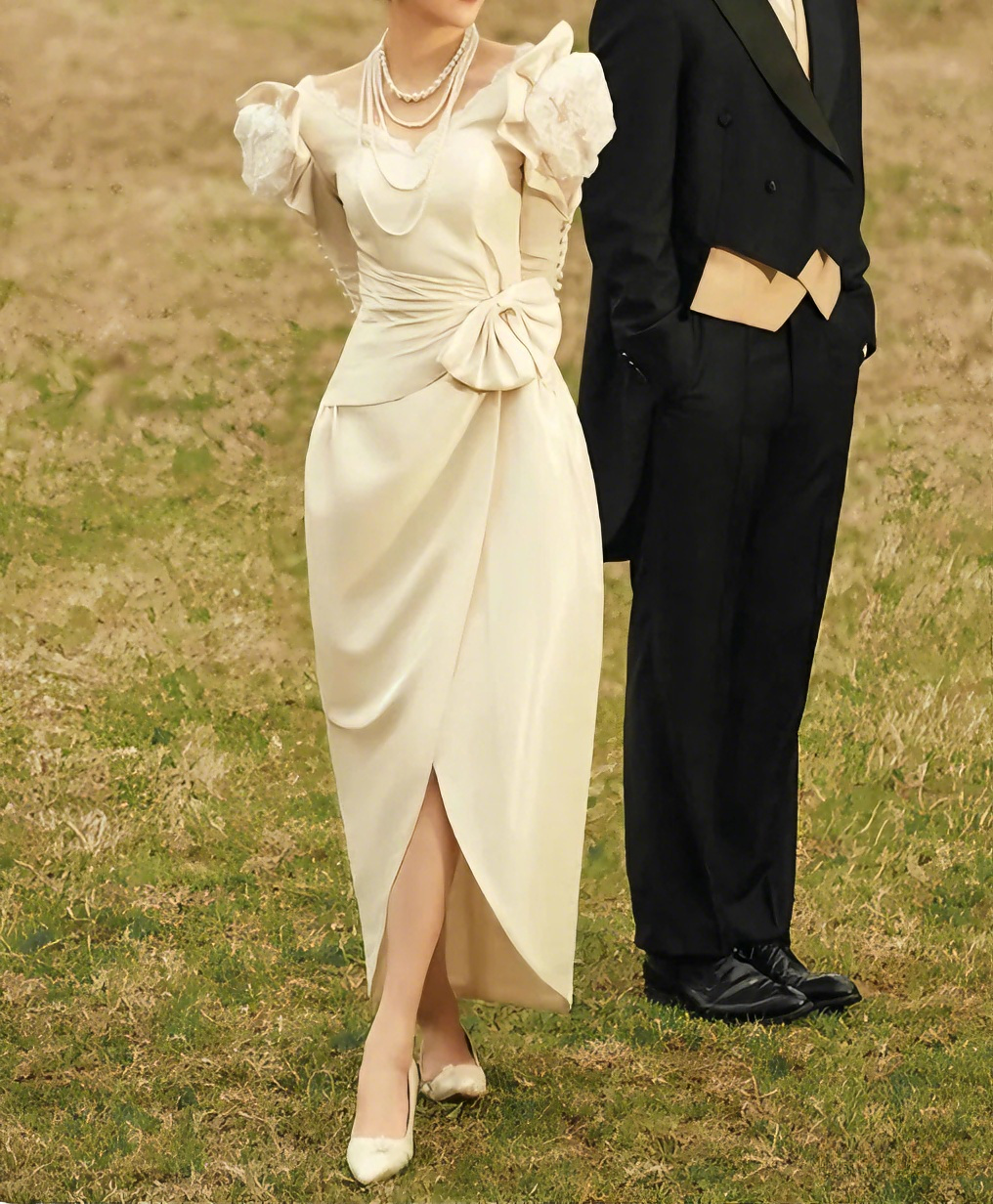 Retro Wedding Dress V-neck Pleated Wedding Dress D3863