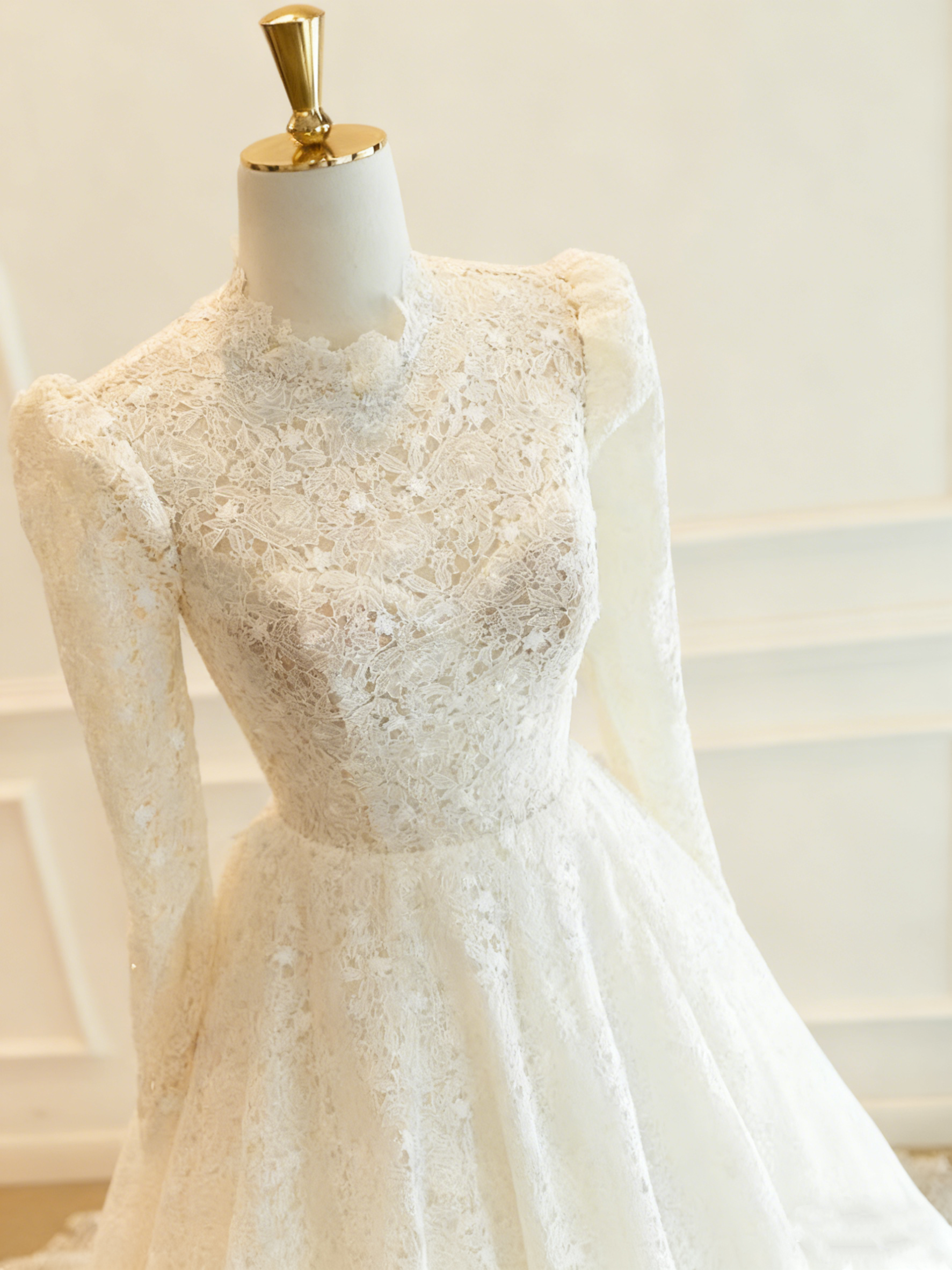 Retro Wedding Dresss Long Sleeves Backless Wedding Dress D3822