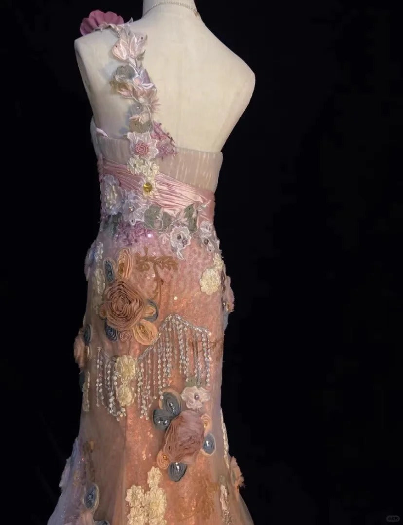 Romantic Prom Dress One Shoulder Flower Prom Gown Evening Dress Gala Dress Birthday Party Dress D2423