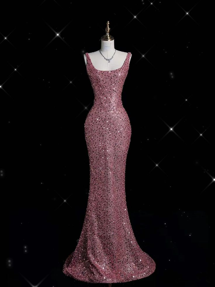 Shiny Pink Straps Sequins Mermaid Long Formal Party Dress Evening Gown MD7514