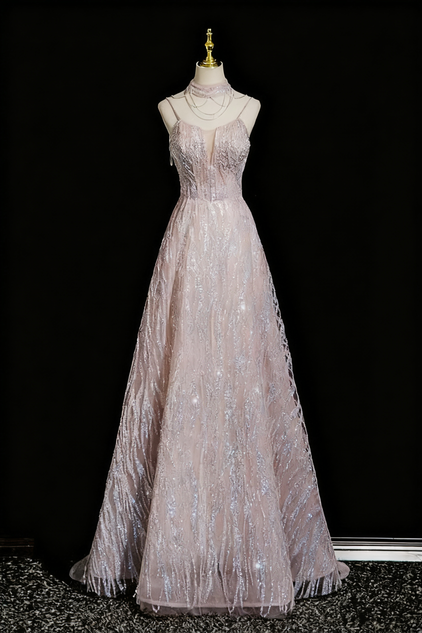 Shiny Prom Dress A Line Spaghetti Straps Evening Dress Birthday Party Outfits D3316