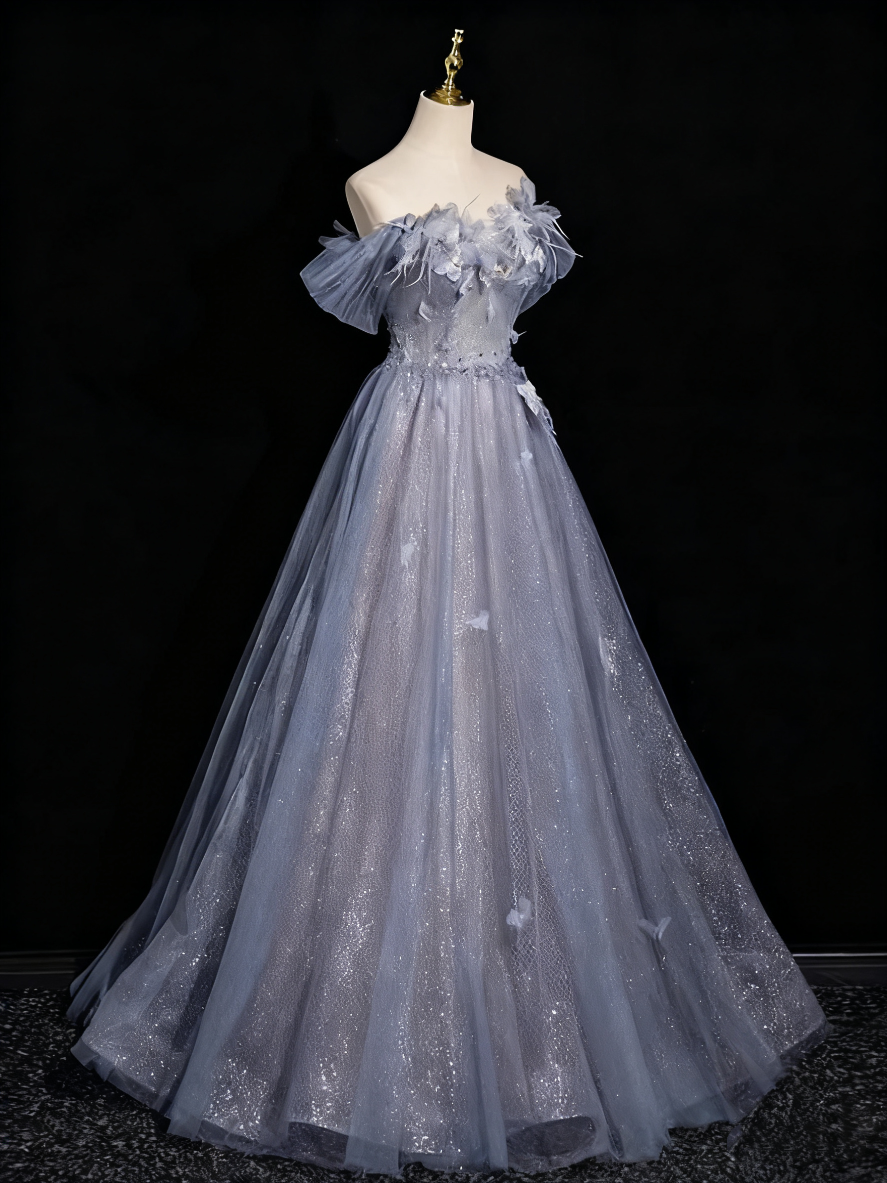 Shiny Prom Dress Off Shoulder Tulle Pleated Evening Gown Birthday Party Dress D3318
