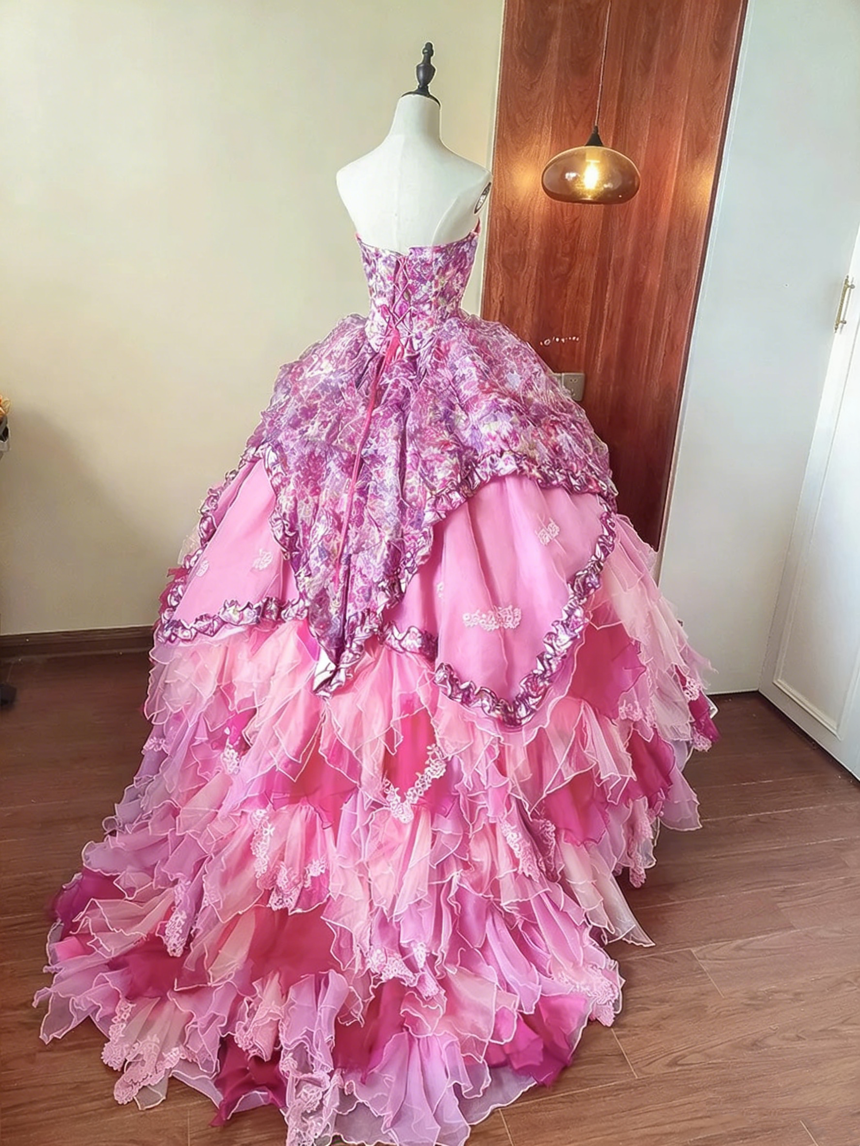 Stunning Prom Dress Strapless Print Pleated Tiered Ball Gown Evening Dress Quinceanera Dress Birthday Party Dress D4100