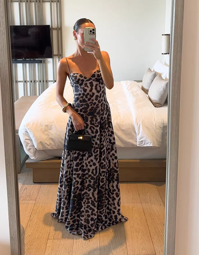 Stunning Summer Dress Spaghetti Straps Leopard Print Women Dress Vacation Outfits Party Dress D2878
