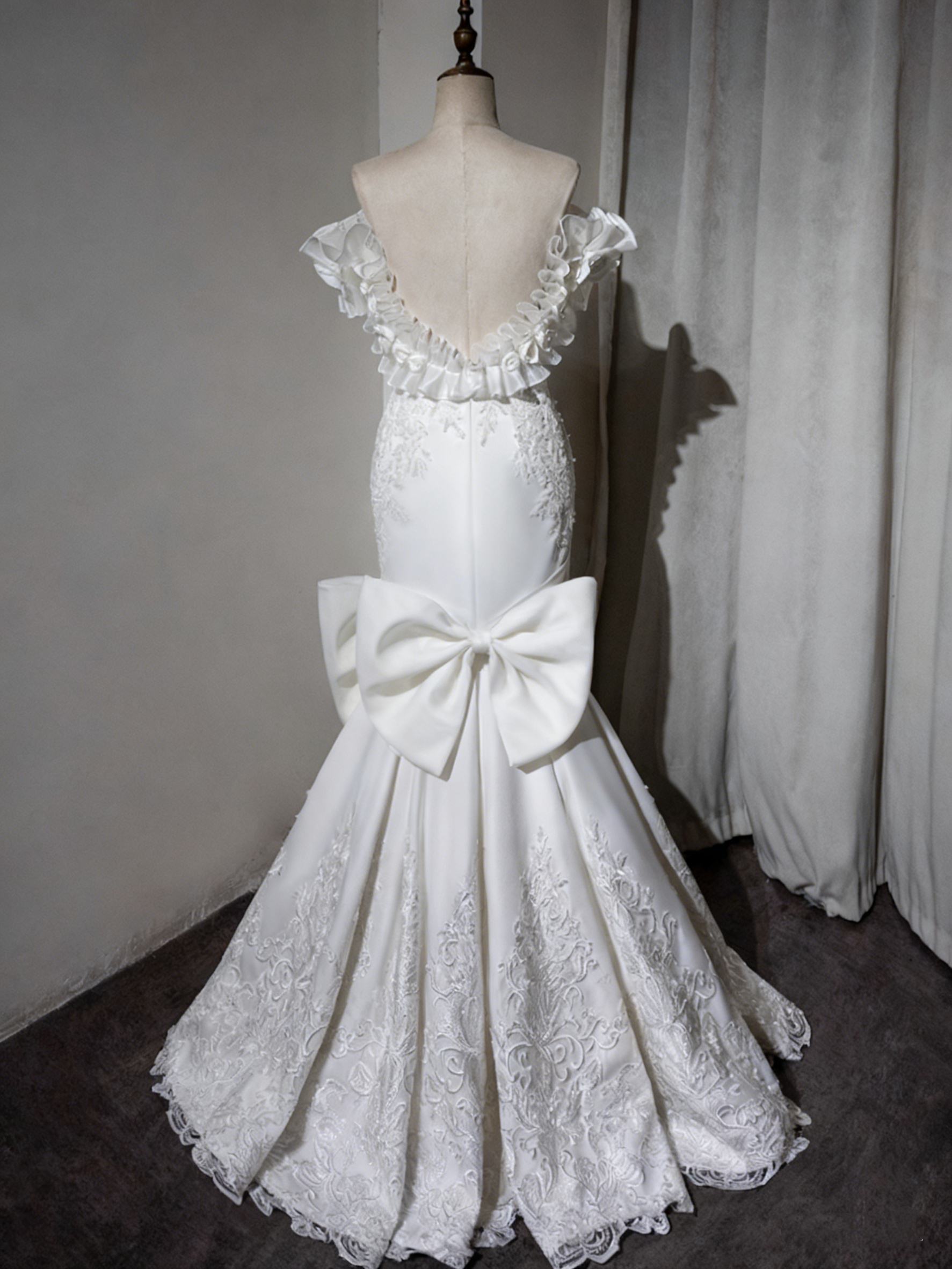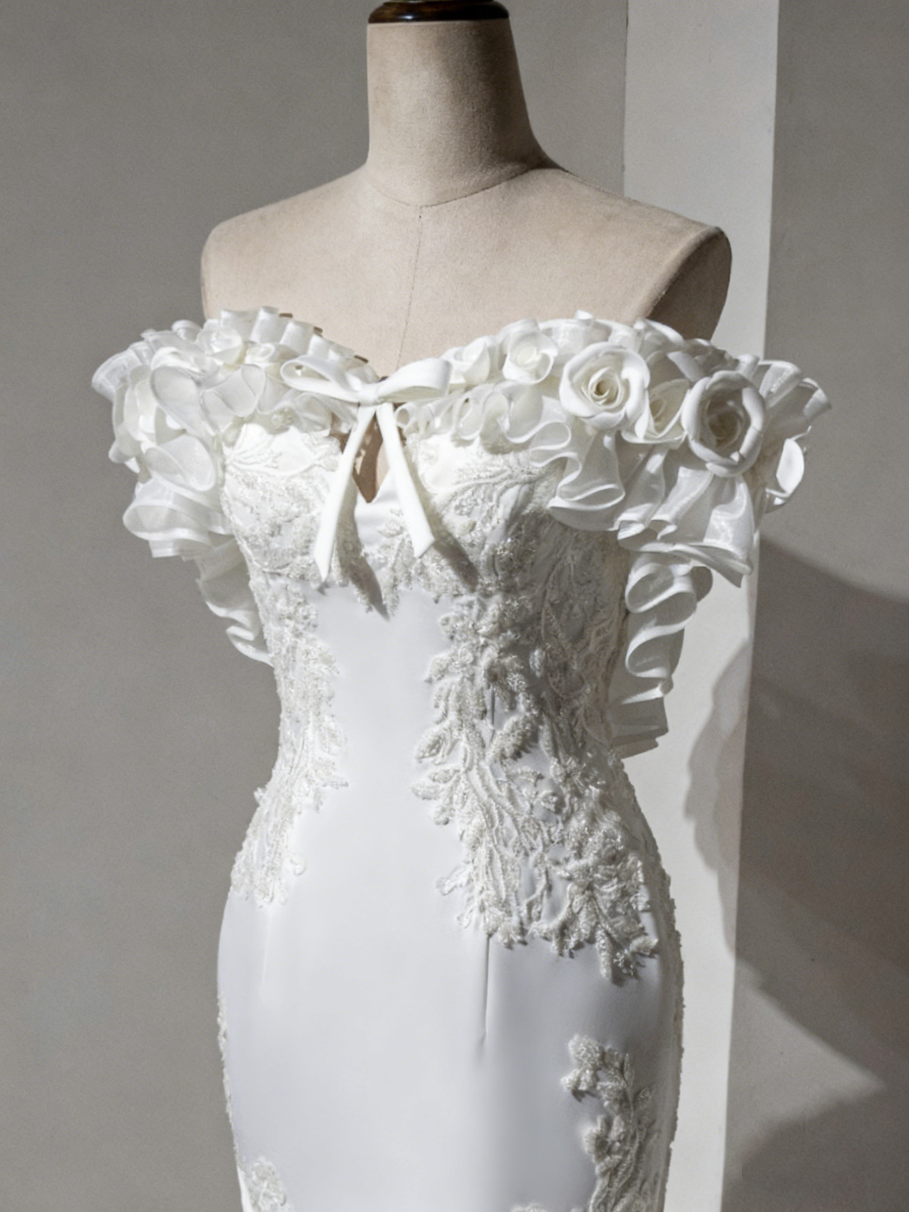 Vintage Wedding Dress Off Shoulder Pleated Mermaid Wedding Dress D3893